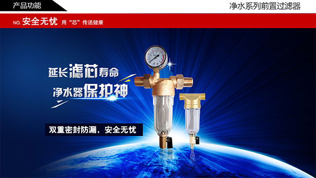 前置過濾凈水器,顧名思義是指安裝在管道的前端的工作濾芯(多為不銹鋼濾網或結合其它濾芯),來進行過濾的。前置過濾凈化器視濾網的不同過濾精度差別很大,從5-300微米都有。一般其只能去除直徑大于5微米以上的顆粒雜質;其對人體直接飲水的凈化作用很不明顯,更多的是對用水電器和高檔的龍頭、花潵起保護作用。出水絕對不適合直接飲用!